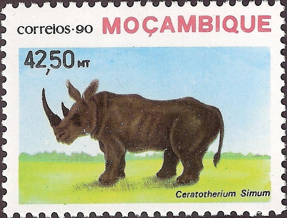 Visibility: public Image owner: none postage 8/20/1990 42.50m multi dt=endangered species (1990 Mozambique) d=Ceratotherium simum unwmk perf=11x11.25 Crops No visible images cropped from this one. Measurements Resolution is unknown. Source Source name: Colnect File URL: http://i.colnect.net/images/b/1122/350/White-Rhinoceros-Ceratotherium-simum.jpg Uploaded August 24, 2014, 6:21 pm by Stan Shebs |