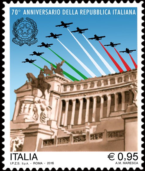 |   (496 x 584 pixels) | Type: stamp Issuer: Italy  Date: 2016 Denom: ? Visibility: public Image owner: none postage 6/2/2016 0,95€ multi issue=70th Anniversary of the Republic and of Equal Opportunities d=70th Anniversary of the Republic unwmk Crops No visible images cropped from this one. Measurements Resolution is unknown. Source Source name: Colnect File URL: http://i.colnect.net/b/3349/038/70th-Anniversary-of-the-Italian-Republic.jpg Uploaded June 20, 2016, 7:24 pm by Stan Shebs |