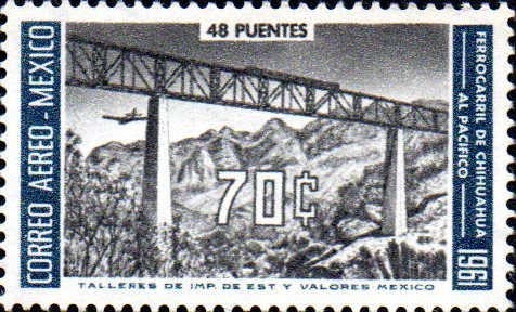 Visibility: public Image owner: none airmail 12/4/1961 70c blk&bl issue=Chihuahua to Pacific railroad opening wmk=MEX-MEX & eagle perf=14 Crops No visible images cropped from this one. Measurements Resolution is unknown. Source Source name: Colnect File URL: http://i.colnect.net/images/b/2980/525/Railroad-bridge.jpg Uploaded July 1, 2016, 6:58 pm by Stan Shebs |