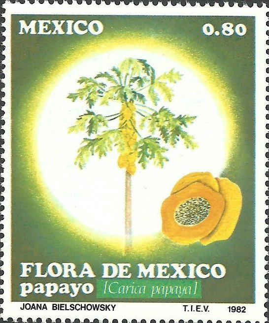 Visibility: public Image owner: none postage 9/18/1982 0.80p multi dt=Mexican flora d=Carica papaya (1982 Mexico) wmk=MEX & eagle perf=14.25 Crops No visible images cropped from this one. Measurements Resolution is unknown. Source Source name: Colnect File URL: http://i.colnect.net/b/2913/130/Papayo---Carica-papayal.jpg Uploaded July 1, 2016, 7:07 pm by Stan Shebs |