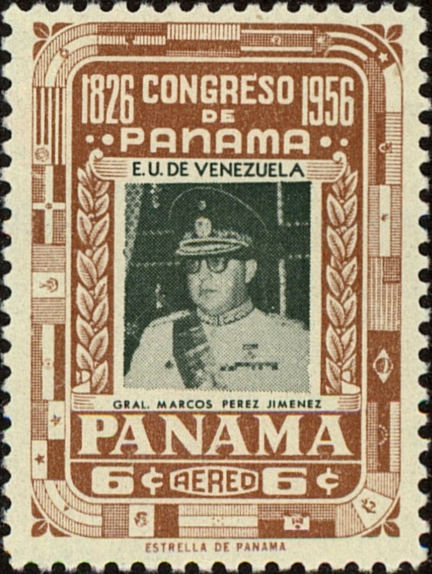 Visibility: public Image owner: none airmail 7/18/1956 6c yelbrn&olgrn issue=Pan-American Congress 1956 d=General Marcos Perez Jimenez unwmk Crops No visible images cropped from this one. Measurements Resolution is unknown. Source Source name: Colnect File URL: http://i.colnect.net/b/2799/249/General-Marcos-Perez-Jimenez.jpg Uploaded July 5, 2016, 3:51 am by Stan Shebs |