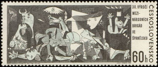 Visibility: public Image owner: none postage 7/5/1966 60h multi d=Guernica, By Pablo Picasso unwmk perf=11.25x11.5 Crops No visible images cropped from this one. Measurements Resolution is unknown. Source Source name: Colnect File URL: http://i.colnect.net/b/438/518/Guernica-by-Pablo-Picasso.jpg Uploaded August 24, 2014, 8:53 pm by Stan Shebs |