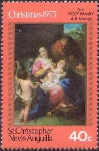 Visibility: public Image owner: none postage 12/1/1973 40c multi issue=Christmas 1973 wmk=mult crown & script CA Crops No visible images cropped from this one. Measurements Resolution is unknown. Source Source name: Colnect File URL: http://i.colnect.net/b/2969/297/The-Holy-Family-Mengs.jpg Uploaded July 21, 2016, 4:21 pm by Stan Shebs |