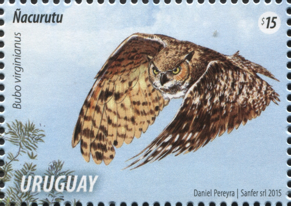 Visibility: public Image owner: none postage 9/30/2015 $15 multi issue=Spring 2015 dt=owls (2015 Uruguay) d=Bubo virginianus (2015) unwmk Crops No visible images cropped from this one. Measurements Resolution is unknown. Source Source name: WNS File URL: http://www.wnsstamps.post//stamps/2015/UY/UY042.15.jpg Uploaded August 5, 2016, 2:25 am by Stan Shebs |