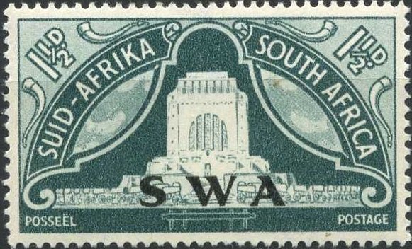 Visibility: public Image owner: none postage 12/1/1949 1 1/2p dlgrn issue=Voortrekker Monument d=monument ovpt=SWA oc=blk on=issuer=South Africa-issue=Voortrekker Monument-1 1/2p wmk=mult springboks head Crops No visible images cropped from this one. Measurements Resolution is unknown. Source Source name: Colnect File URL: http://i.colnect.net/b/2309/911/MonumentPretoria.jpg Uploaded August 9, 2016, 9:40 pm by Stan Shebs |
