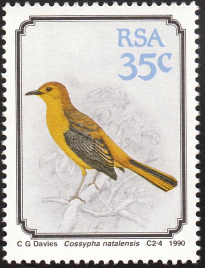 Visibility: public Image owner: none postage 8/2/1990 35c dt=birds (1990 South Africa) d=Cossypha natalensis unwmk Crops No visible images cropped from this one. Measurements Resolution is unknown. Source Source name: Colnect File URL: http://i.colnect.net/images/b/675/281/Red-capped-Robin-Chat-Cossypha-natalensis.jpg Uploaded August 25, 2014, 12:30 am by Stan Shebs |