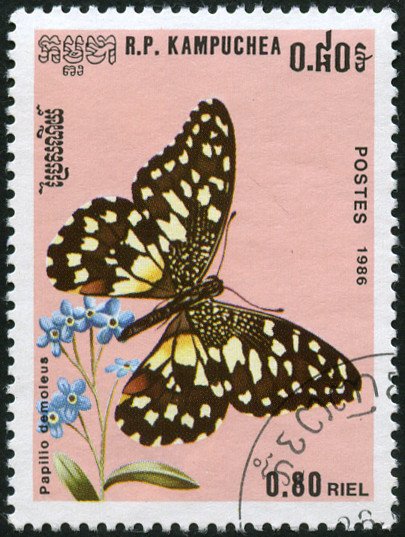 Visibility: public Image owner: none postage 6/19/1986 0.80r multi dt=butterflies (1986 Cambodia) d=Papilio demoleus (1986) unwmk Crops No visible images cropped from this one. Measurements Resolution is unknown. Source Source name: Colnect File URL: http://i.colnect.net/b/3627/959/Checkered-Swallowtail-Papilio-demoleus.jpg Uploaded April 13, 2017, 3:50 pm by Stan Shebs |