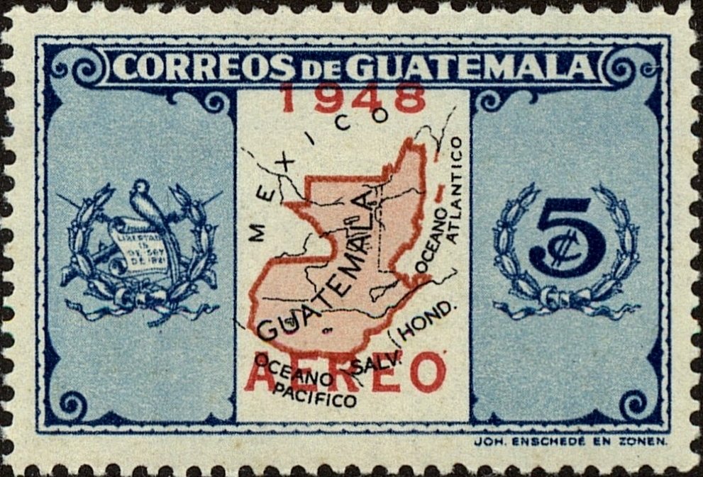 Visibility: public Image owner: none airmail 5/14/1948 5c bl&red unwmk Crops No visible images cropped from this one. Measurements Resolution is unknown. Source Source name: Colnect File URL: http://i.colnect.net/b/3705/261/Map-of-Guatemala.jpg Uploaded May 1, 2017, 4:05 pm by Stan Shebs |