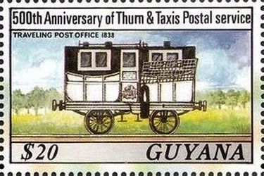 Visibility: public Image owner: none postage 5/3/1990 $20 multi issue=150th Anniversary of the Penny Black / 500th Anniversary of Thurn and Taxis Postal Service unwmk perf=14.25 Crops No visible images cropped from this one. Measurements Resolution is unknown. Source Source name: Colnect File URL: http://i.colnect.net/b/3477/031/Traveling-post-office.jpg Uploaded May 1, 2017, 6:34 pm by Stan Shebs |