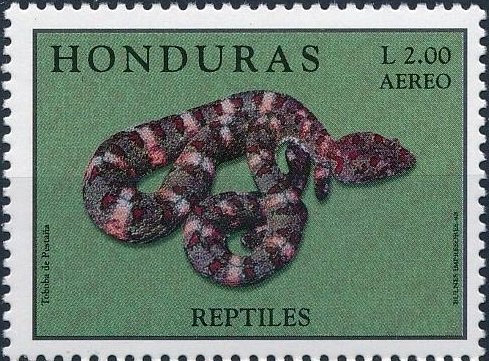 Visibility: public Image owner: none airmail 7/31/1998 2l multi issue=Reptiles 1998 d=Bothriechis schlegelii (1998) unwmk Crops No visible images cropped from this one. Measurements Resolution is unknown. Source Source name: Colnect File URL: http://i.colnect.net/b/3533/413/Pitviper-Bothrops-sp.jpg Uploaded May 1, 2017, 9:03 pm by Stan Shebs |