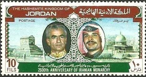 Visibility: public Image owner: none postage 10/12/1973 10f multi issue=2500th Anniversary of Iranian Monarchy wmk=HKJ Crops No visible images cropped from this one. Measurements Resolution is unknown. Source Source name: Colnect File URL: http://i.colnect.net/b/3394/870/Kings-of-Iran-and-Jordan.jpg Uploaded May 10, 2017, 12:35 am by Stan Shebs |