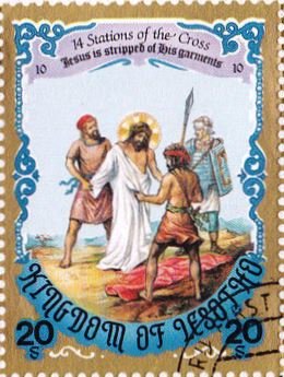 Visibility: public Image owner: none postage 3/8/1985 20s multi issue=Easter 1985 dt=Stations of the Cross (1985) d=Jesus is stripped of his garments wmk=basuto hat perf=11 Crops No visible images cropped from this one. Measurements Resolution is unknown. Source Source name: Colnect File URL: http://i.colnect.net/b/3966/308/Stripped.jpg Uploaded May 11, 2017, 12:27 am by Stan Shebs |
