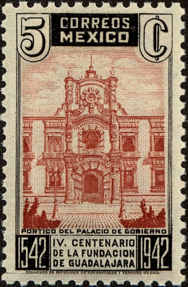 Visibility: public Image owner: none postage 2/11/1942 5c blk&copred issue=Guadalajara 400th d=Government Palace wmk=CORREOS MEXICO perf=10x10.5 Crops No visible images cropped from this one. Measurements Resolution is unknown. Source Source name: Colnect File URL: http://i.colnect.net/b/3877/925/Government-Palace.jpg Uploaded May 18, 2017, 7:43 pm by Stan Shebs |