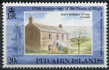 Visibility: public Image owner: none postage 12/7/1992 20c multi issue=175th Anniversary of the Death of William Bligh d=Bligh’s birthplace St Tudy Cornwall & HMS Resolution wmk=St Edwards crown & CA perf=14.5 Crops No visible images cropped from this one. Measurements Resolution is unknown. Source Source name: Colnect File URL: http://i.colnect.net/b/3962/138/Bligh’s-birthplace-at-St-Tudy-Cornwall.jpg Uploaded May 30, 2017, 6:53 pm by Stan Shebs |