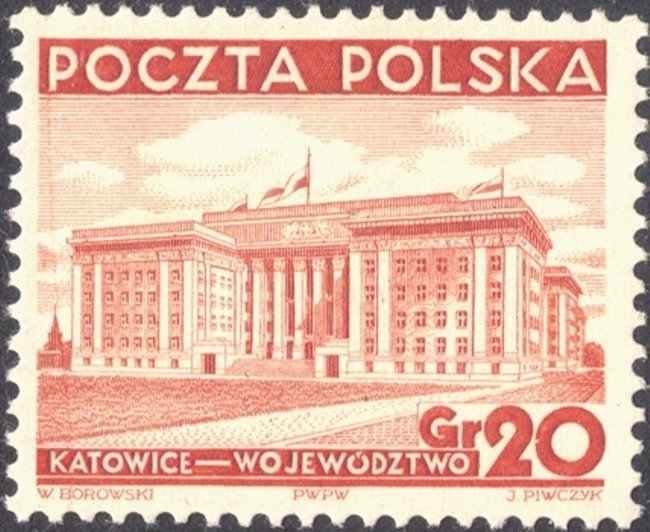 Visibility: public Image owner: none postage 4/1/1937 20g orgbrn issue=1937 dt=scenic (1937) d=Municipal Building,Katowice unwmk perf=9-14.5 Crops No visible images cropped from this one. Measurements Resolution is unknown. Source Source name: Colnect File URL: http://i.colnect.net/b/4004/498/Muncipal-Building-Katowice.jpg Uploaded May 30, 2017, 11:10 pm by Stan Shebs |