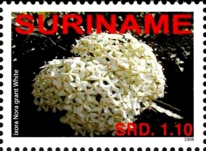 Visibility: public Image owner: none postage 12/10/2008 $1.10 multi issue=Flowers 2008 dt=flowers (2008 Surinam) d=Ixora coccinea (2008) unwmk perf=14 Crops No visible images cropped from this one. Measurements Resolution is unknown. Source Source name: Colnect File URL: http://i.colnect.net/b/4028/792/Ixora-Nora-grant-White.jpg Uploaded June 10, 2017, 4:23 am by Stan Shebs |