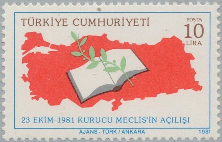 Visibility: public Image owner: none postage 10/23/1981 10l multi issue=Inauguration of Constituent Assembly unwmk perf=13 Crops No visible images cropped from this one. Measurements Resolution is unknown. Source Source name: Colnect File URL: http://i.colnect.net/b/2588/597/Turkey-Map-Book-and-Olive-Branch.jpg Uploaded June 15, 2017, 4:54 pm by Stan Shebs |