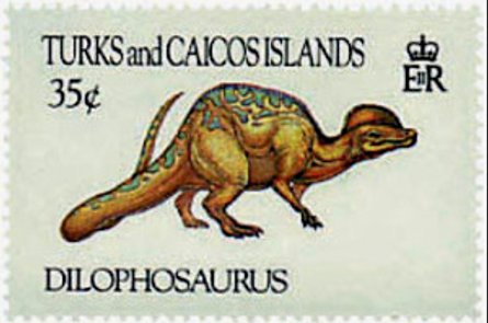 Visibility: public Image owner: none postage 11/15/1993 35c multi dt=prehistoric animals (1993 Turks & Caicos Islands) d=Dilophosaurus wmk=mult crown & script CA perf=14.25x14 Crops No visible images cropped from this one. Measurements Resolution is unknown. Source Source name: Colnect File URL: http://i.colnect.net/b/3993/923/Dilophosaurus.jpg Uploaded June 16, 2017, 3:22 pm by Stan Shebs |