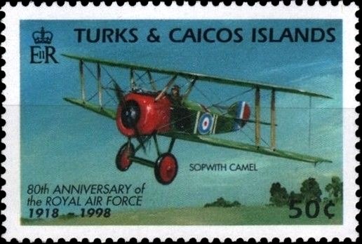 Visibility: public Image owner: none postage 8/18/1998 50c multi issue=80th Anniversary of Royal Air Force d=Sopwith Camel (1998 Turks & Caicos Islands) wmk=mult crown & script CA perf=14 Crops No visible images cropped from this one. Measurements Resolution is unknown. Source Source name: Colnect File URL: http://i.colnect.net/b/4000/057/Sopwith-Camel.jpg Uploaded June 16, 2017, 3:28 pm by Stan Shebs |