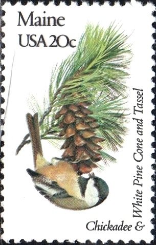 Visibility: public Image owner: none postage 4/14/1982 20c multi issue=state birds & flowers dt=state birds & flowers d=Maine - Chickadee & White Pine Cone and Tassel unwmk perf=10.5x11 Crops No visible images cropped from this one. Measurements Resolution is unknown. Source Source name: Colnect File URL: http://i.colnect.net/b/4136/371/Maine---Chickadee-White-Pine-Cone-and-Tassel.jpg Uploaded June 18, 2017, 2:26 am by Stan Shebs  |
