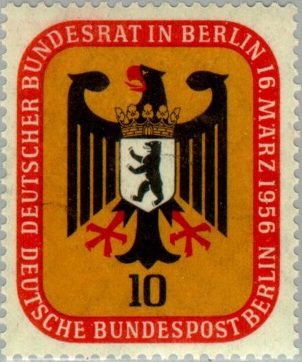 Visibility: public Image owner: none postage 3/16/1956 10pf multi issue=Bundesrat meeting d=Coat of arms of Berlin on Federal Eagle wmk=DBP & rosettes Crops No visible images cropped from this one. Measurements Resolution is unknown. Source Source name: Colnect File URL: http://i.colnect.net/b/154/868/Coat-of-arms-of-Berlin-on-Federal-Eagle.jpg Uploaded December 3, 2012, 9:08 pm by Stan Shebs |
