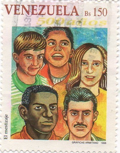Visibility: public Image owner: none postage 8/10/1998 150b multi issue=500th Anniversary of Discovery of Venezuela unwmk perf=12 Crops No visible images cropped from this one. Measurements Resolution is unknown. Source Source name: Colnect File URL: http://i.colnect.net/b/3067/059/Miscegenation.jpg Uploaded June 21, 2017, 2:04 pm by Stan Shebs |
