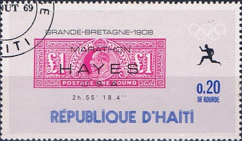 Visibility: public Image owner: none postage 5/16/1969 20c multi issue=Winners of Olympic Marathon d=Hayes, London-1908 unwmk Crops No visible images cropped from this one. Measurements Resolution is unknown. Source Source name: Colnect File URL: http://i.colnect.net/b/3026/623/United-Kingdom-of-Great-Britain---Hayes.jpg Uploaded June 27, 2017, 6:03 pm by Stan Shebs |