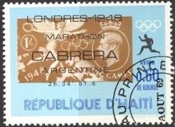 Visibility: public Image owner: none postage 5/16/1969 60c multi issue=Winners of Olympic Marathon d=Cabrera, London-1948 unwmk Crops No visible images cropped from this one. Measurements Resolution is unknown. Source Source name: Colnect File URL: http://i.colnect.net/b/3029/424/United-Kingdom-of-Great-Britain---Cabrera.jpg Uploaded June 27, 2017, 6:03 pm by Stan Shebs |