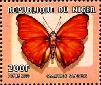 Visibility: public Image owner: none postage 7/27/2000 200fr multi issue=Butterflies of Africa dt=Butterflies of Africa d=Cymothoe sangaris (2000) unwmk Crops No visible images cropped from this one. Measurements Resolution is unknown. Source Source name: Colnect File URL: http://i.colnect.net/b/3553/360/Cymothoe-sangaris.jpg Uploaded June 29, 2017, 12:35 pm by Stan Shebs |