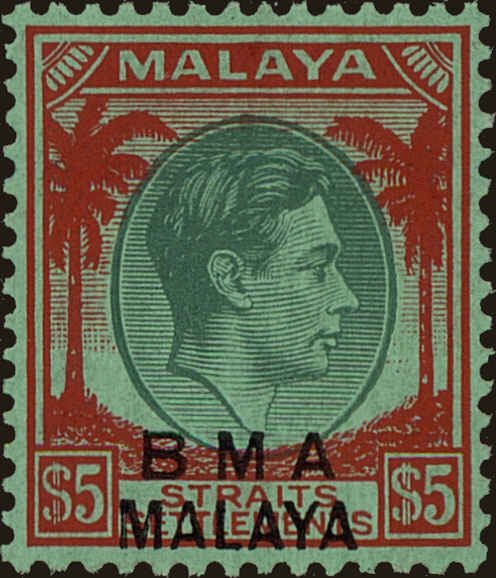 Visibility: public Image owner: none postage $5 grn&red pc=grn issue=1945 BMA d=King George VI & palms ovpt=BMA//MALAYA oc=blk on=issue=1937-$5-grn&red-pc=grn wmk=mult crown & script CA perf=14 Crops No visible images cropped from this one. Measurements Resolution is unknown. Source Source name: Colnect File URL: http://i.colnect.net/b/3590/982/Overprinted--BMA-Malaya-.jpg Uploaded July 1, 2017, 1:24 am by Stan Shebs |