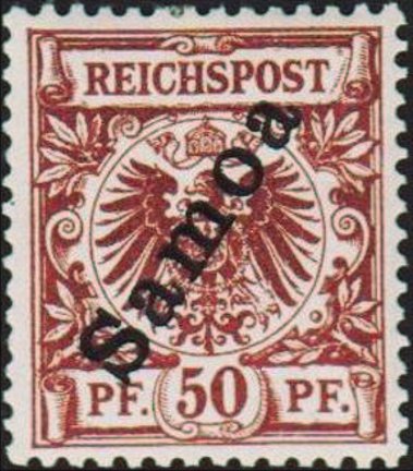 Visibility: public Image owner: none postage 4/1900 50pf choc issue=Samoa overprints d=German eagle (1889) ovpt=Samoa oc=blk on=issuer=Germany-1889-50pf-choc unwmk perf=13.5x14.25 Crops No visible images cropped from this one. Measurements Resolution is unknown. Source Source name: Colnect File URL: http://i.colnect.net/b/3948/017/overprint-on-Reichpost.jpg Uploaded July 9, 2017, 12:23 pm by Stan Shebs |