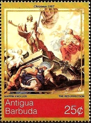 Visibility: public Image owner: none postage 12/2/1997 25c multi issue=Christmas 1997 dt=paintings (1997 Antigua) d="The Resurrection" - Martin Knoller unwmk perf=14.25 Crops No visible images cropped from this one. Measurements Resolution is unknown. Source Source name: Colnect File URL: http://i.colnect.net/b/4127/092/The-Resurrection-by-Martin-Knollen.jpg Uploaded October 8, 2017, 5:53 pm by Stan Shebs |