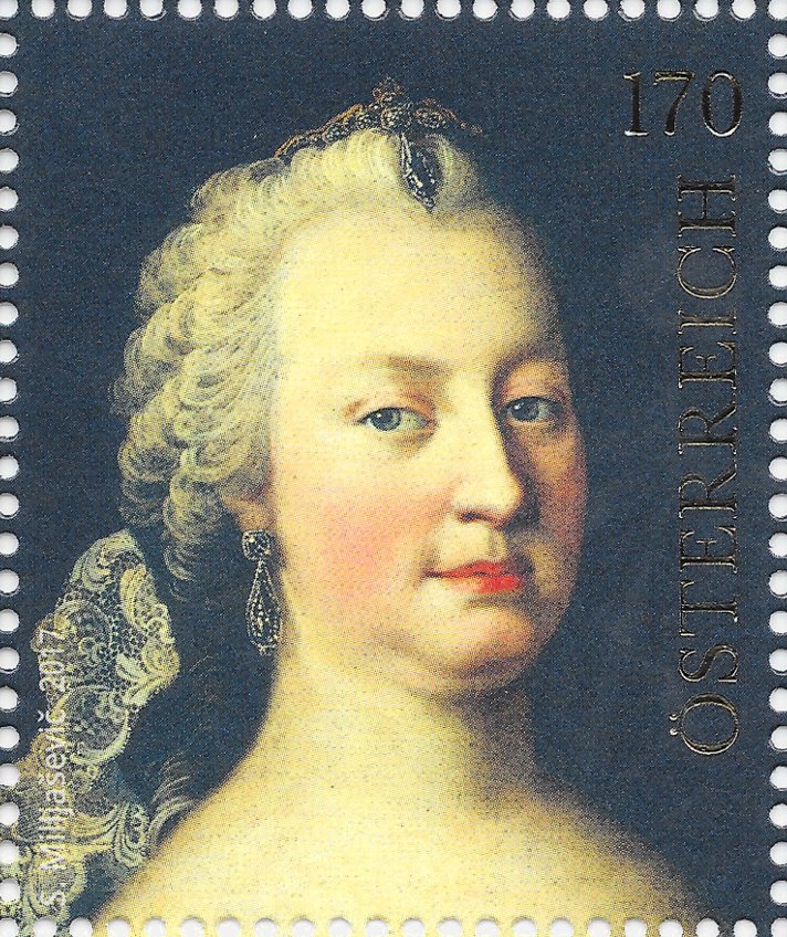 Visibility: public Image owner: none postage 5/13/2017 170(c) multi issue=300th anniversary of the birth of Maria Theresa d=Maria Theresa (2017 common) unwmk Crops No visible images cropped from this one. Measurements Resolution is unknown. Source Source name: Colnect File URL: http://i.colnect.net/b/4028/019/300th-birthday-of-Empress-Maria-Theresia.jpg Uploaded October 10, 2017, 5:00 pm by Stan Shebs |