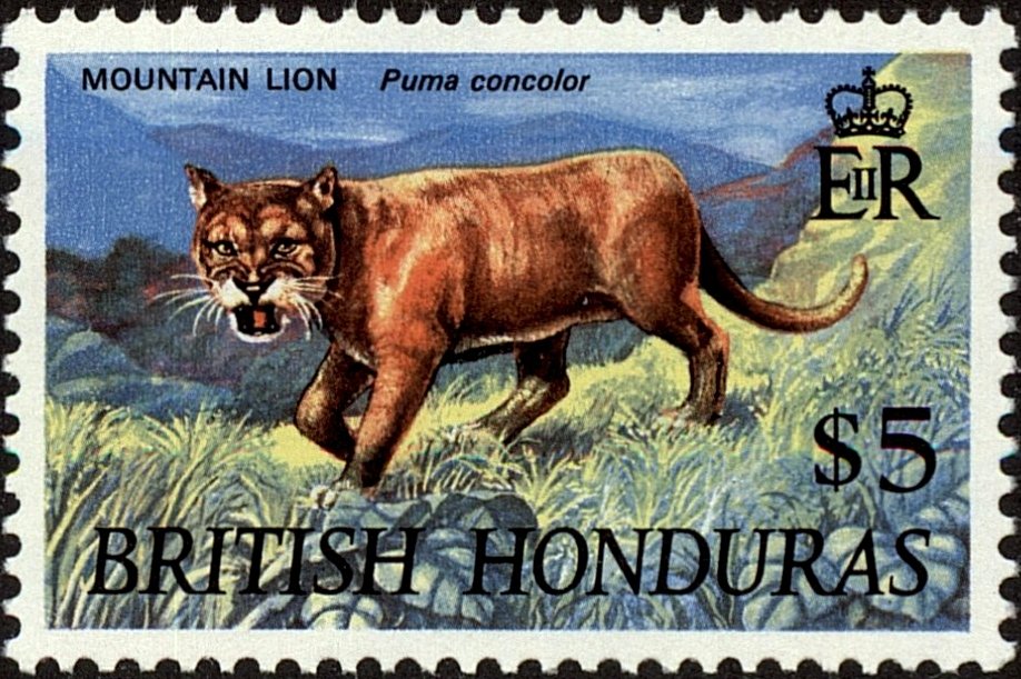 Visibility: public Image owner: none postage 10/15/1968 $5 multi dt=animals (1968 British Honduras) d=mountain lion wmk=St Edwards crown & CA Crops No visible images cropped from this one. Measurements Resolution is unknown. Source Source name: Colnect File URL: http://i.colnect.net/b/3946/385/Cougar-Felis-concolor.jpg Uploaded October 18, 2017, 12:44 am by Stan Shebs |