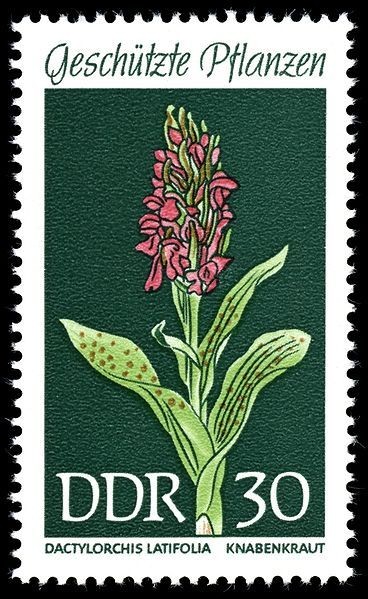 Visibility: public Image owner: none postage 4/4/1969 30pf multi dt=protected plants (1969) d=Dactylorchis latifolia unwmk Crops No visible images cropped from this one. Measurements Resolution is unknown. Source Source name: Colnect File URL: http://i.colnect.net/images/b/317/607/Dactylorchis-latifolia.jpg Uploaded August 26, 2014, 12:16 am by Stan Shebs |