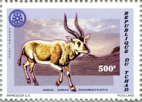 Visibility: public Image owner: none postage 12/17/1996 500fr multi issue=Rotary International 1996 d=Addax nasomaculatus (1996) unwmk Crops No visible images cropped from this one. Measurements Resolution is unknown. Source Source name: Colnect File URL: http://i.colnect.net/b/4043/677/Addax-nasomaculatus.jpg Uploaded October 24, 2017, 7:27 pm by Stan Shebs |