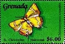 Visibility: public Image owner: none postage 10/2/1989 $6 multi dt=butterflies (1989 Grenada) d=Strymon simaethis wmk=St Edwards crown & CA perf=14 Crops No visible images cropped from this one. Measurements Resolution is unknown. Source Source name: Colnect File URL: http://i.colnect.net/b/4337/279/St-Christopher--s-Hairstreak-Chlorostrymon-simaethis.jpg Uploaded November 21, 2017, 7:29 pm by Stan Shebs |