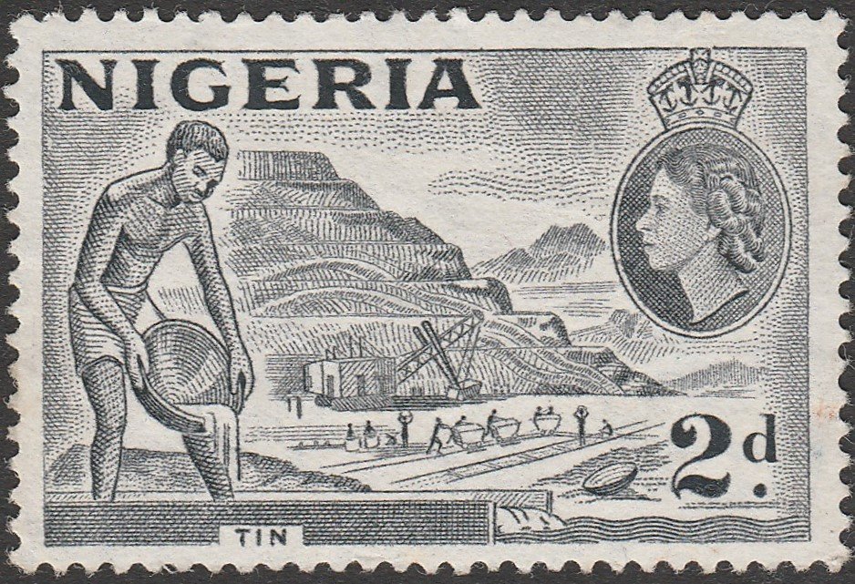 Visibility: public Image owner: none postage 7/23/1956 2p blkvio issue=Elizabeth II pictorials d=Tin mining wmk=mult crown & script CA perf=14 Crops No visible images cropped from this one. Measurements Resolution is unknown. Source Source name: Colnect File URL: http://i.colnect.net/b/4061/221/Tin-mining---Type-II.jpg Uploaded December 14, 2017, 1:12 pm by Stan Shebs |