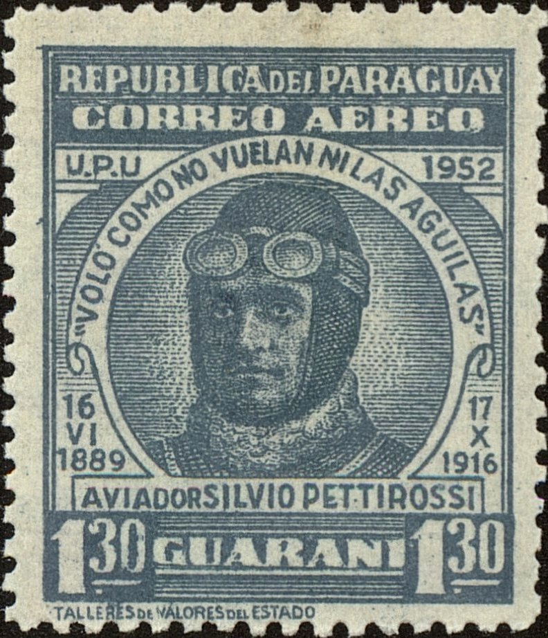 Visibility: public Image owner: none airmail 3/1/1954 1.30g blgrn d=Silvio Pettirossi unwmk perf=10 Crops No visible images cropped from this one. Measurements Resolution is unknown. Source Source name: Colnect File URL: http://i.colnect.net/b/3826/617/Silvio-Pettirossi.jpg Uploaded December 27, 2017, 4:39 pm by Stan Shebs |