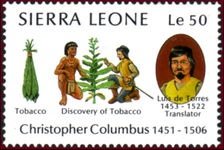 Visibility: public Image owner: none postage 9/11/1987 50le multi issue=500th Anniversary of Discovery of America (1992) d=Nicotiana tabacum and Luis de Torres unwmk perf=14.25 Crops No visible images cropped from this one. Measurements Resolution is unknown. Source Source name: Colnect File URL: http://i.colnect.net/b/4333/467/Nicotiana-tabacum-and-Luis-de-Torres.jpg Uploaded January 3, 2018, 8:37 pm by Stan Shebs |