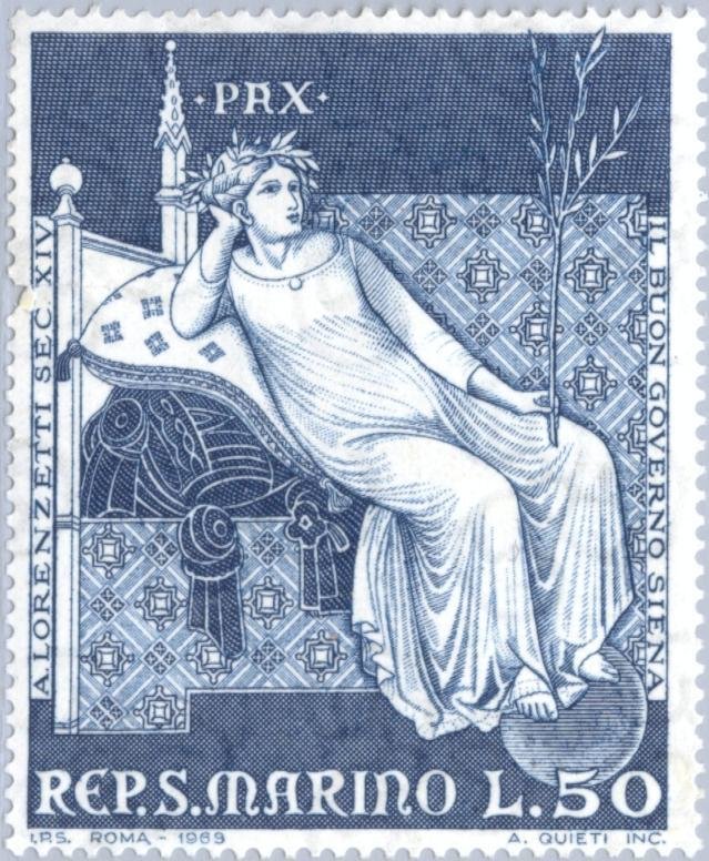 Visibility: public Image owner: none postage 2/13/1969 50l multi dt=Lorenzetti frescoes d=Peace (1969) wmk=triskelion perf=14 Crops No visible images cropped from this one. Measurements Resolution is unknown. Source Source name: Colnect File URL: http://i.colnect.net/b/171/925/-ldquo-Peace-rdquo--by-Lorenzetti.jpg Uploaded August 26, 2014, 4:52 pm by Stan Shebs |