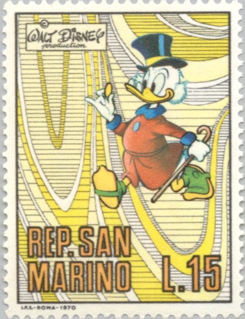 Visibility: public Image owner: none postage 12/22/1970 15l multi dt=Disney characters (1970) d=Scrooge McDuck unwmk perf=14 Crops No visible images cropped from this one. Measurements Resolution is unknown. Source Source name: Colnect File URL: http://i.colnect.net/b/172/179/Scrooge-McDuck.jpg Uploaded August 26, 2014, 4:52 pm by Stan Shebs |