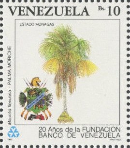 Visibility: public Image owner: none postage 6/27/1990 10b multi issue=20th Anniversary of Bank of Venezuela dt=trees & state arms d=Mauritia flexuosa Monagas unwmk perf=12 Crops No visible images cropped from this one. Measurements Resolution is unknown. Source Source name: Colnect File URL: http://i.colnect.net/b/4500/696/Mauritia-flexuosa-Monagas.jpg Uploaded January 13, 2018, 8:05 pm by Stan Shebs |