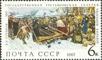 Visibility: public Image owner: none postage 12/29/1967 6k multi dt=paintings in Tretjakov Gallery d=Boyarynya Morozova 1887 V I Surikov 1848-1916 unwmk perf=12 Crops No visible images cropped from this one. Measurements Resolution is unknown. Source Source name: Colnect File URL: http://i.colnect.net/images/b/911/864/-quot-Boyarynya-Morozova-quot--1887-V-I-Surikov-1848-1916.jpg Uploaded August 26, 2014, 5:11 pm by Stan Shebs |