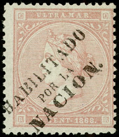 Visibility: public Image owner: none postage 40c rose issue=1868b d=Queen Isabella II (1868 Cuba) ovpt=HABILITADO//POR LA//NACION oc=blk on=issue=1868a-40c-rose unwmk perf=14 Crops No visible images cropped from this one. Measurements Resolution is unknown. Source Source name: Colnect File URL: http://i.colnect.net/b/4145/120/Queen-Isabella-II.jpg Uploaded May 8, 2018, 4:29 pm by Stan Shebs |