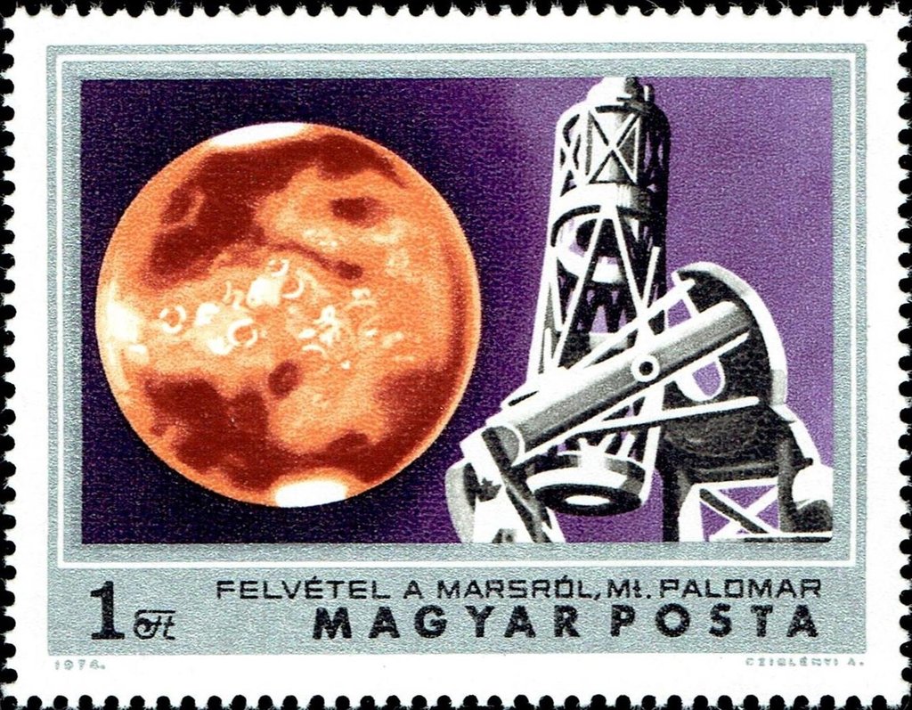 Visibility: public Image owner: none postage 3/11/1974 1fo multi dt=Mars exploration d=Mars & Hale Telescope unwmk perf=12.5 Crops No visible images cropped from this one. Measurements Resolution is unknown. Source Source name: Colnect File URL: http://i.colnect.net/b/4501/060/Mars-and-Mt-Palomar-Observatory.jpg Uploaded June 7, 2018, 4:34 pm by Stan Shebs |
