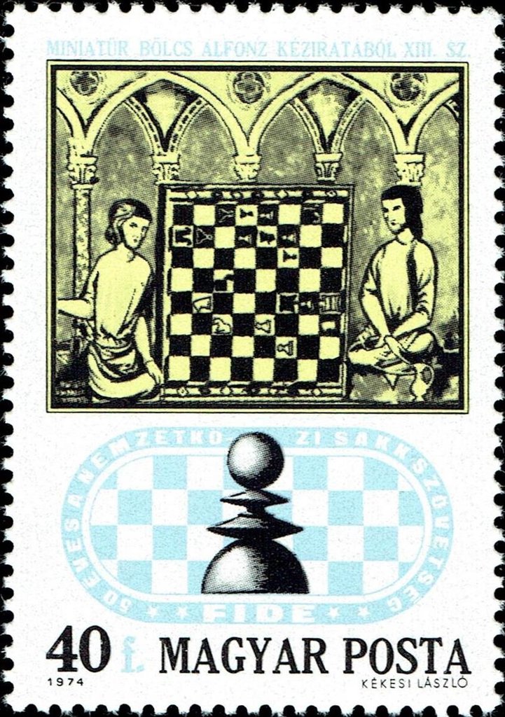 Visibility: public Image owner: none postage 6/6/1974 40f multi issue=Chess Federation 50th d=Chess Players from 15th Century Manuscript unwmk perf=12 Crops No visible images cropped from this one. Measurements Resolution is unknown. Source Source name: Colnect File URL: http://i.colnect.net/b/4502/472/Chess-Players-from-15th-Century-Manuscript.jpg Uploaded June 7, 2018, 4:34 pm by Stan Shebs |