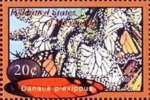 Visibility: public Image owner: none postage 2/28/2000 20c multi issue=Butterflies of the World 2000 dt=butterflies (2000 Micronesia) d=Danaus plexippus (2000 Micronesia) unwmk perf=14 Crops No visible images cropped from this one. Measurements Resolution is unknown. Source Source name: Colnect File URL: http://i.colnect.net/b/4747/133/Danaus-plexippus.jpg Uploaded June 22, 2018, 12:18 am by Stan Shebs |