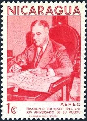 Visibility: public Image owner: none airmail 10/12/1970 1cord car issue=25th Anniversary of the Death of Franklin D. Roosevelt unwmk perf=14x14.5 Crops No visible images cropped from this one. Measurements Resolution is unknown. Source Source name: Colnect File URL: http://i.colnect.net/b/4612/851/Franklin-D-Roosevelt.jpg Uploaded June 27, 2018, 8:07 pm by Stan Shebs |