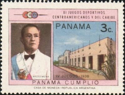 Visibility: public Image owner: none airmail 10/7/1970 3c multi issue=11th Central American & Caribbean Games wmk=Argentine arms & AR Crops No visible images cropped from this one. Measurements Resolution is unknown. Source Source name: Colnect File URL: http://i.colnect.net/b/4740/383/Juan-D-Arosemena-and-Arosemena-Stadium.jpg Uploaded June 30, 2018, 5:03 am by Stan Shebs |